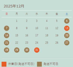 休業期間中もWebショップでのご注文は可能ですが、確認メールの送信を含めたご対応は仕事初め 2026年1月6日(火)から順次となりますので、ご了承頂きますようお願い申し上げます。